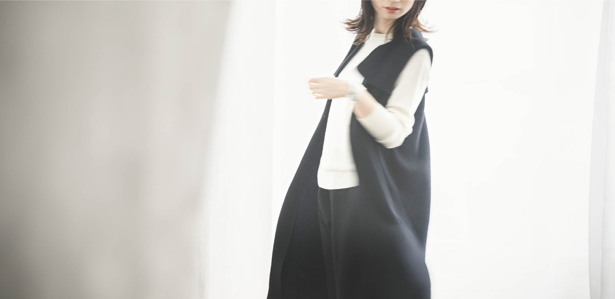 選んだのは「受注生産」という方法自分たちが生み出す一着一着に、完璧を求めたいから。服作りの工程のどこかで目の届かなくなる大量生産はしません。ベーシックかつエレガントなラインナップは、オーダーを受けてから、その人のために、一切の妥協なく、丁寧に、大切に創り上げます。私たちは「受注生産」というカタチにこだわります。