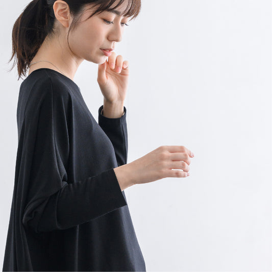 ほんの1ミリの違いへのこだわり。ごくシンプルなデザインのカットソーであったとしても、そこにはどうしても譲れないこだわりがあります。襟ぐりをあと1ミリ大きく。袖の折り返しをあと2ミリ長く。そんなミリ単位のこだわりが、着る人を美しく魅力的に見せる一着を生み出します。